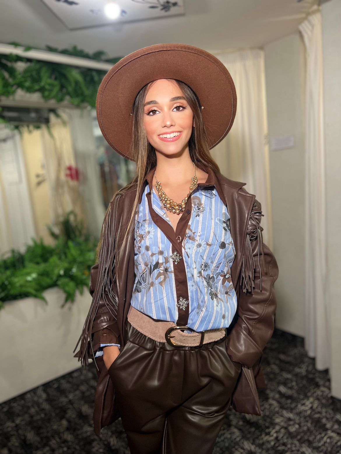 Giacca con frange.morbida e fornita di cinta e comode tasche.la vestibilità  è  unica e veste fino taglia 46.colore marrone molto delicato. La modella è  alta 1.69